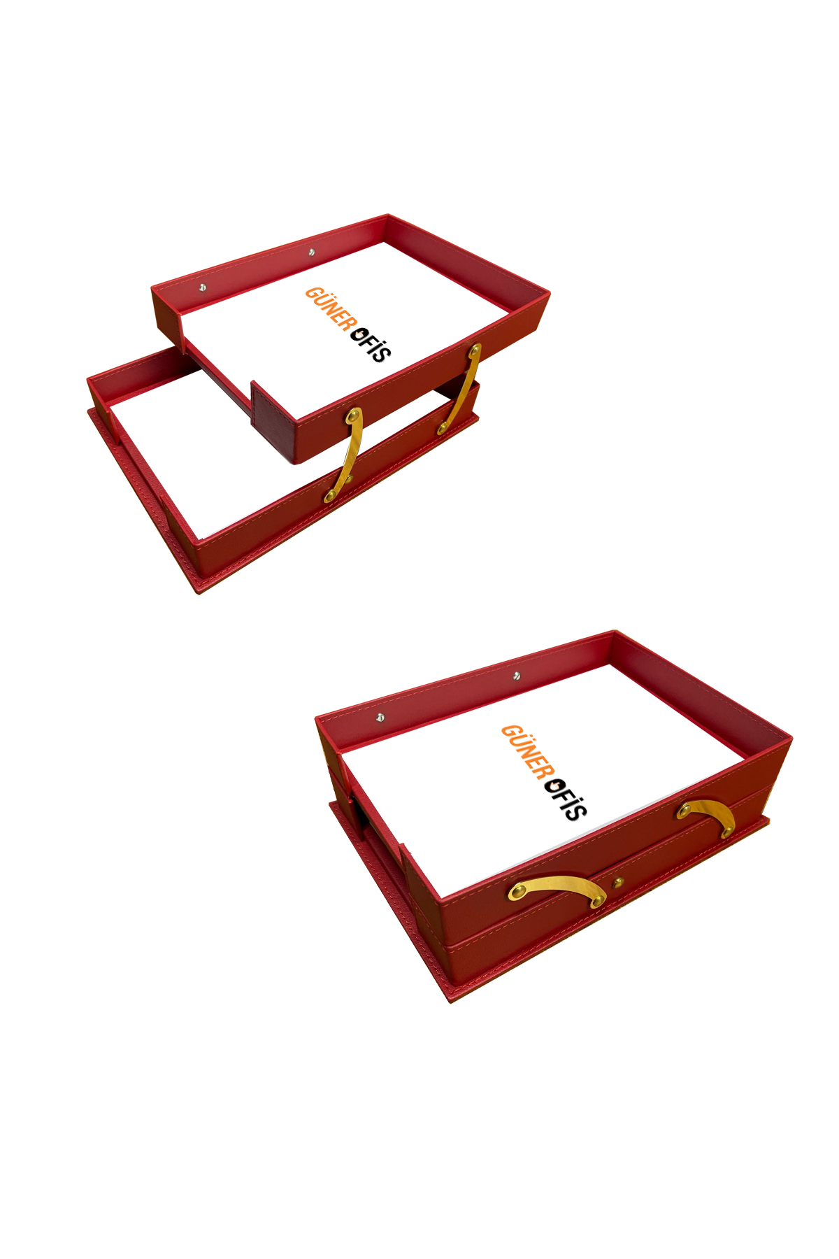رف مستندات جلد مزدوج قابل للطي – لون احمر