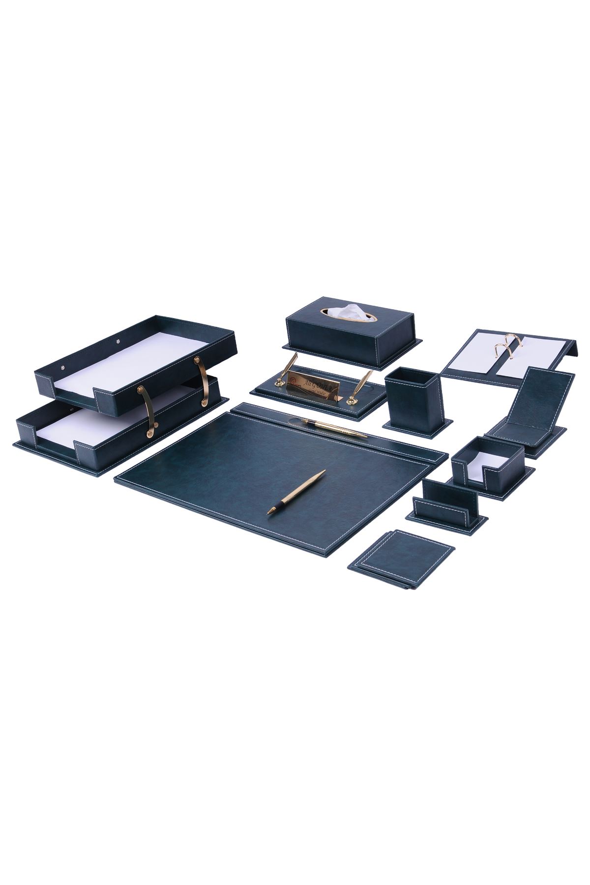 Vega Leather Desk Set 14 Accessories Green | Vega Leather Desk Set | Leather Desk Set | Covered Leather Desk | Leather Office Accessories | Leather Desk Accessories